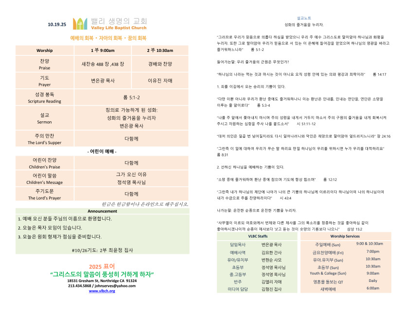 10.19.2025 주보 페이지 정보 작성자 최고관리자 댓글 0건 조회 36회 작성일 25-10-17 13:38 목록 본문 . 다음글10.12.2025 주보 25.10.13 댓글 0 댓글목록 등록된 댓글이 없습니다. 목록